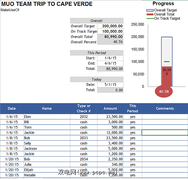 它不是最华丽的,但是您可以添加“按目标进行",计算特定时期的捐款或一天的捐款。