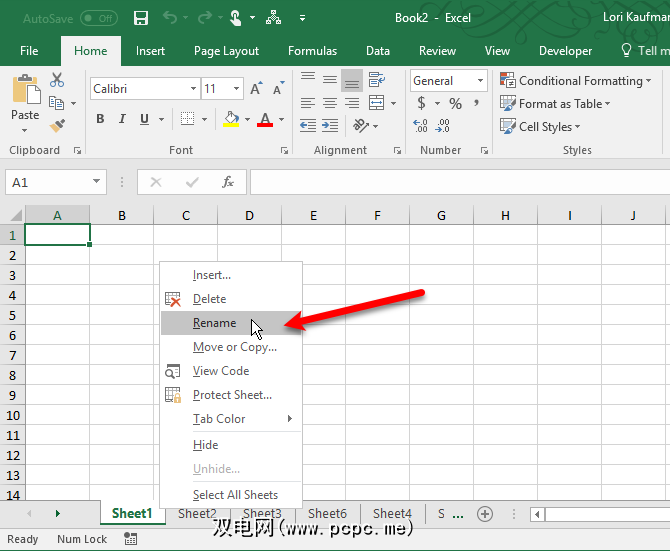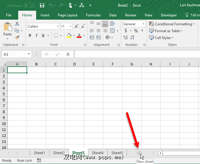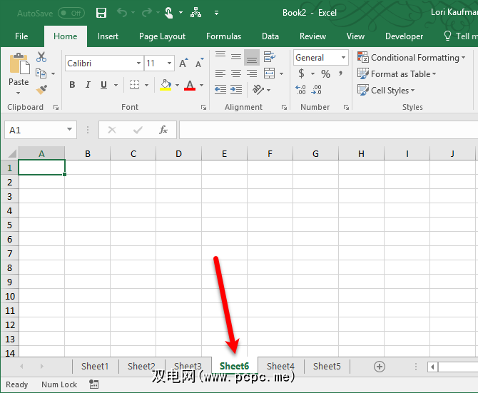 即使您已将新标签页插入其他位置,新标签页也会使用下一个连续的工作表编号进行编号。在我们的示例中,新工作表插入在 Sheet3 之后,但编号为 Sheet6 。