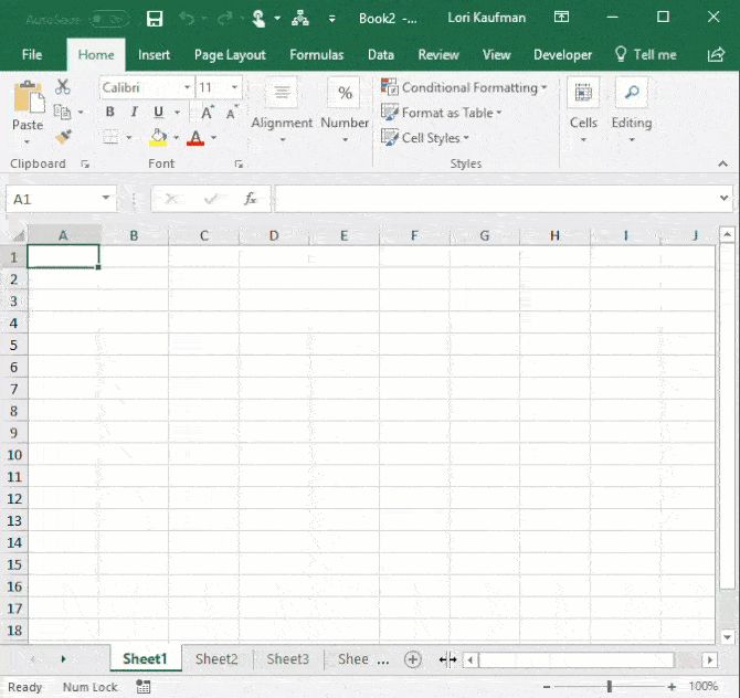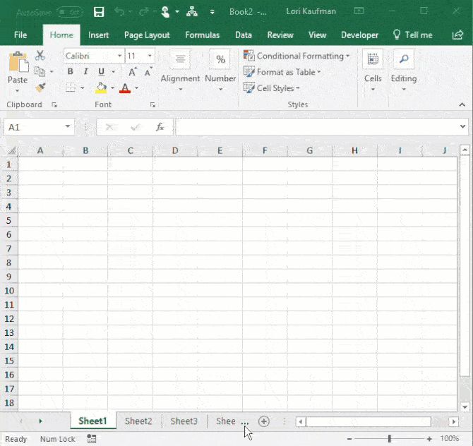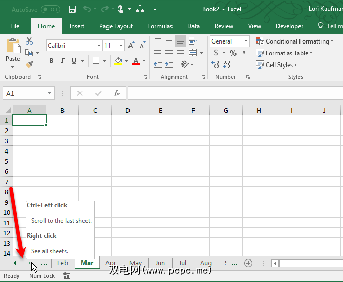 有很多选项卡,取决于Excel窗口的大小,它们可能不会一次全部显示。您可以通过两种方式滚动浏览标签页。
