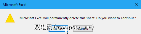 如果要删除的工作表包含数据,则会显示以下确认对话框。如果您确定要删除工作表上的数据,请单击删除。