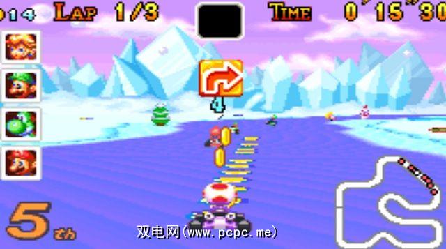 谈论有争议:这是唯一的Mario Kart没有Lakitu特色的游戏!这款掌上游戏赢得了粉丝的青睐,因为这就是Mario Kart应该做的一切。