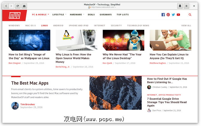 您可以将Epiphany描述为Linux的Safari。这是一款轻巧,专注的浏览器,不会被Chrome和Firefox附带的所有插件和功能所困扰。作为正式的GNOME项目以及Elementary OS中的新默认设置,Epiphany是目前受支持程度最高,仅Linux的Web浏览器。