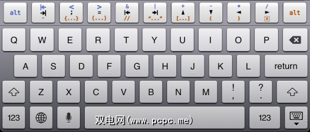 请注意两个Alt键:该行实际上包含27个不同的键,因为每个键具有三个独立的功能。黑色状态为默认状态,而蓝色的Alt键激活蓝色状态,红色的状态为打开红色状态。现在,只需单击一下,分号和等号就会出现。您可以轻松地引用字符串,创建所有三种大括号以及使用箭头键浏览代码。