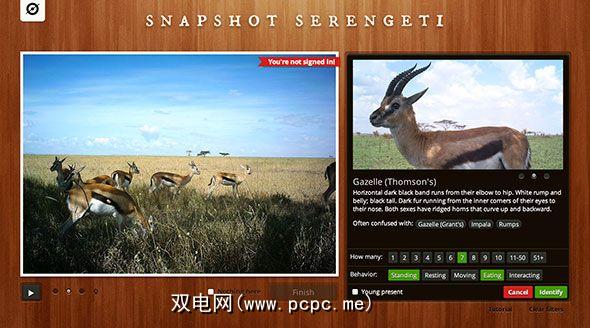快照塞伦盖蒂可能是所有这些项目中最容易参与的部分,部分原因是它比识别频谱图上的声音更有趣,部分是因为工具非常擅长帮助您识别动物。您不仅可以通过对捕获物进行分类来帮助该项目,还可以学习一两个有关野生游戏的知识,包括经常混淆的物种之间的细微差异。
