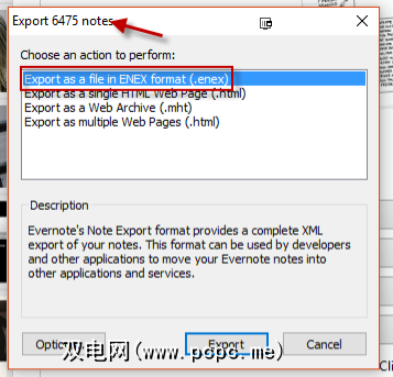 将那些笔记突出显示,返回OneNote Importer工具,在第2部分中,您可以选择要复制的笔记本,也可以选择可以将巨大的Evernote文件保存在计算机上,该文件保存了所有笔记。出现该框,请检查以确保文件数相同,然后选择第一个选项( .enex 文件)。然后它将开始将您的Evernote笔记导出到.enex文件中。制作此文件所需的时间取决于您拥有多少个笔记。