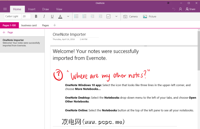 然后您将被邀请在Evernote中查看笔记。发生这种情况时,您的Windows操作系统将自动打开OneNote应用。当它打开时,您会看到所有音符的所有荣耀和光彩(他说,他的手指交叉着)。