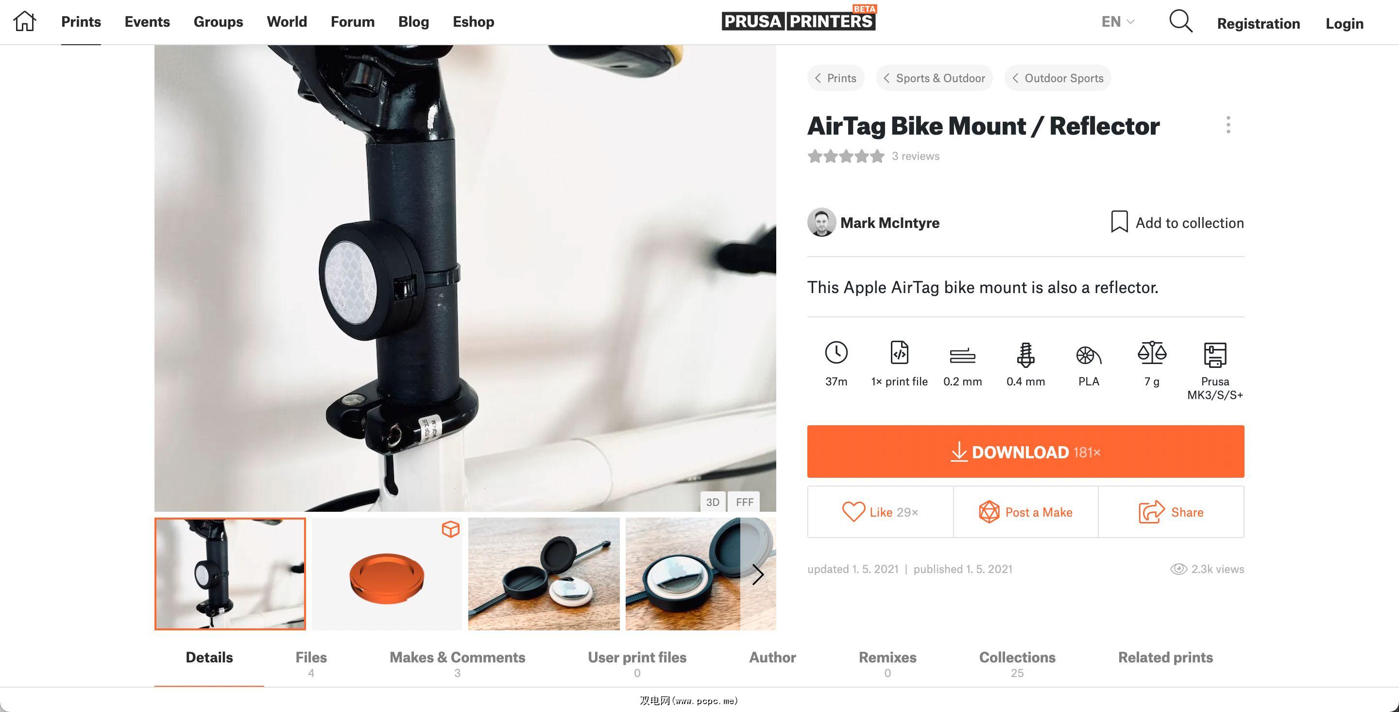 使用 Prusa Printers 的这款 Apple AirTag自行车支架,您可以使用 PLA 灯丝在 37 分钟内为您的 AirTag 打印一个外壳。