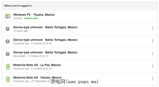 转到设置>安全>登录位置,然后单击编辑。该部分中包含的信息将显示您登录的位置以及使用什么设备登录。