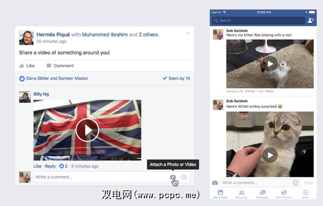 Web应用程序,iOS应用程序和Android应用程序均具有功能支持视频评论,因此您可以立即尝试。视频评论将适用于个人,页面,团体和活动。