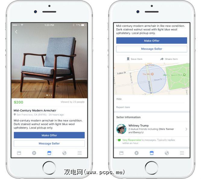 点击项目可显示更多详细信息,包括卖方的名称和资料。然后由您决定与卖家联系并确定交易细节。 Facebook明确表示,它不参与通过Marketplace购买的商品的付款或交付。