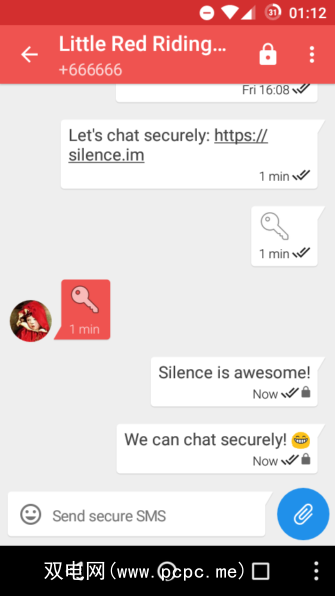 Silence会对您设备上的SMS进行加密,因此不涉及第三方服务器。沉默是开源的,就像WhatsApp一样,它使用Open Whisper的加密协议。