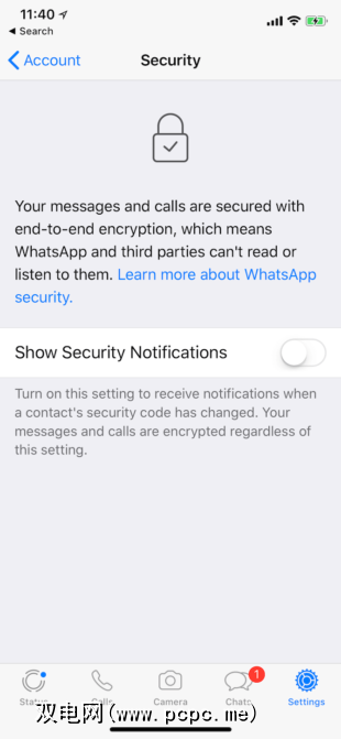WhatsApp成为Facebook的可靠替代品有两个主要原因。首先,WhatsApp默认支持端到端AES 256位加密。只要您(和您正在与之交谈的人)运行最新版本的WhatsApp,您的聊天内容就会被加密。