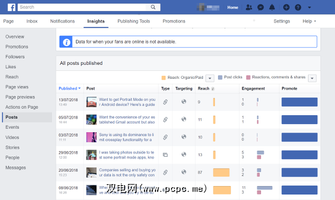 最后,分析是另一个主要区别。通过Facebook页面,管理员可以深入了解其受众人口统计,到达范围,受众参与度和其他分析。