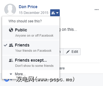 单张照片:如果您只想修改一张照片的隐私设置,则需要找到它在墙上,活动日志中或相册中。打开照片,然后在右上角看到与设置嵌入式隐私时相同的下拉菜单。只需选择所需的听众即可。