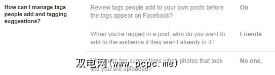 要限制标记建议,请转到设置>时间轴和标签>在上传看起来像您的照片时,谁会看到标签建议,并将设置更改为没人。