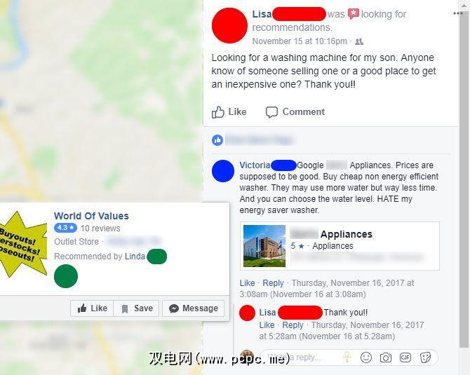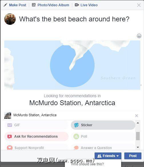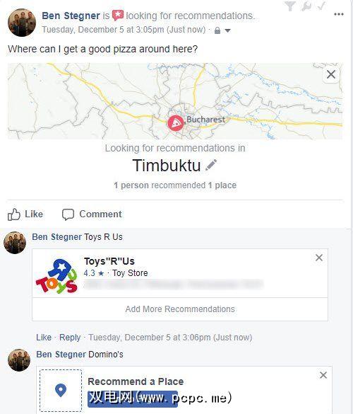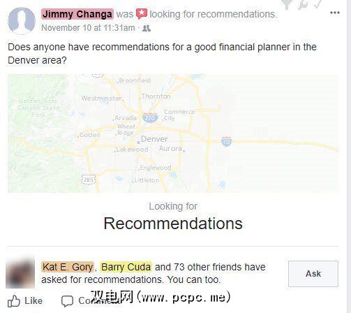 这是Facebook于2016年秋季推出的推荐帖子。他们可以让您向Facebook朋友询问有关该地区业务的推荐。