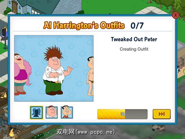 游戏中需要物品的一个区域是Al Harrigton的服装,这是一个机会,可以用已经过去的情节中的经典服装来装扮已经解锁的角色(思考调整了Peter,Speedo Quagmire等)。虽然这是一个不错的选择,但如果不花费真钱,其中的一些“极为稀有"的物品将很难被发现。有时您可能很倒霉而不能赚到任何这些机会项目,这意味着要再等待8个小时或更长时间(或使用特级货币)。