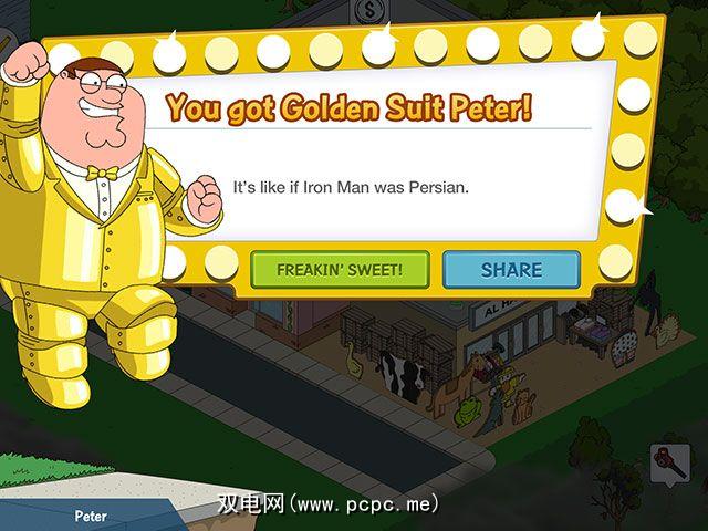 游戏以动画短片彼得·格里芬和彼得·格里芬的动画开头羽毛克星在典型的,沉迷的全家福中战斗,直到整个Quahog镇都被摧毁。就像《辛普森一家》:挖出来一样,这取决于您来重建Quahog – FOX希望您花一些钱来做!