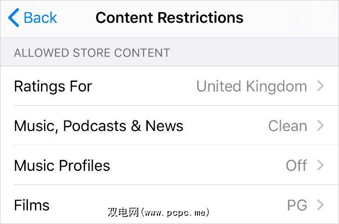 Regardless of your child’s actual age, you can choose the age ratings and content restrictions for iTunes, the App Store, web content, Siri, and Game Center. It might take a while to work through each of these options, but you can configure them however you feel comfortable.