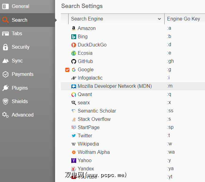 搜索标签包含许多内置搜索引擎。