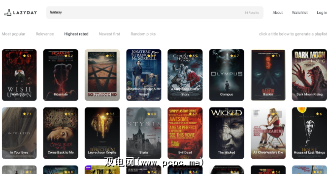LazyDay是获得电影推荐的标记最丰富的电影目录之一。您几乎可以搜索任何内容,然后在结果中放映电影。例如,您可以搜索“角色说我爱你"或“用针刺伤",然后在LazyDay上获得结果。