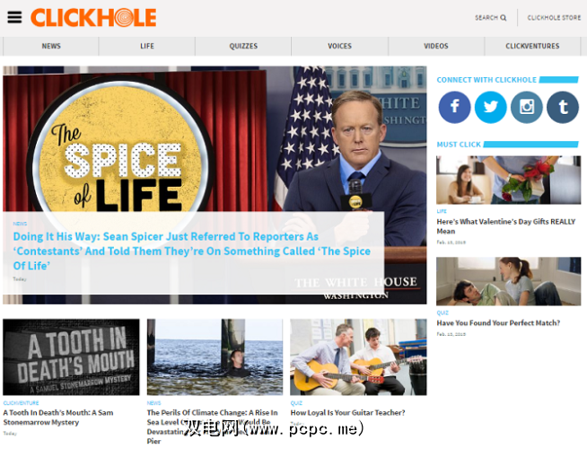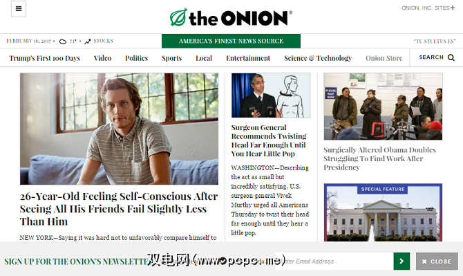 The Onion网站的魅力在于其布局。它看起来完全像一个常规新闻网站;