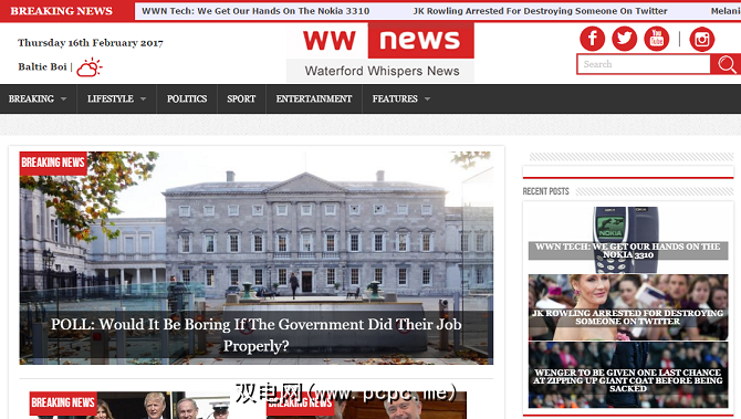 爱尔兰国家因无休止的笑话而享有盛誉。沃特福德耳语新闻采用了这种刻板印象,并将其变成一个机智且引人入胜的网站。正如您可能希望从爱尔兰的网站上看到的那样,这里有很多脏话。实际上,该网站上的大多数头条新闻都至少包含一个诅咒字词。