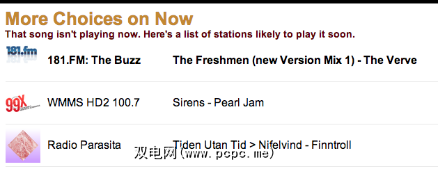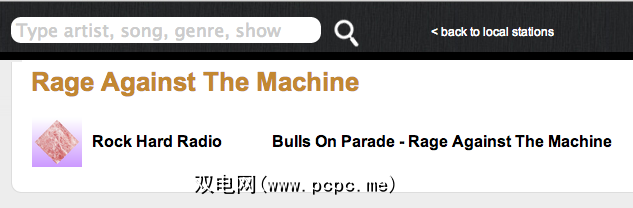 搜索任何歌曲或歌手,您会看到许多播放它们的电台(如上所示)。单击开始收听。该服务声称在任何给定时间播放大约40,000首歌曲,因此您找不到所需的一切。