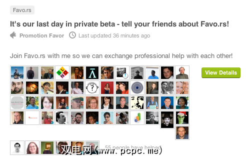 现在,另一个基于社区的站点[不再工作] Favo.rs已从Beta版本发布,其具体目的是使专业人员“通过相互交换宝贵的帮助来建立和加强关系"。简而言之,Favo.rs就是要寻求和给予帮助。