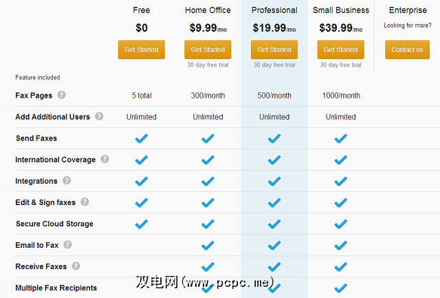 免费版的HelloFax允许您发送5每月传真页。然后进入每月$ 9.99的家庭办公计划,每月有300传真,每月$ 19.99的专业计划,每月有500传真,或每月$ 39.99的企业计划,每月有1000传真。