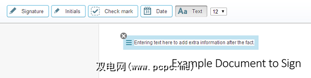 从那里,您可以选择编辑或签名文档。编辑它可以放置复选框,添加文本或添加日期。非常适合在发送传真之前添加最后的信息。