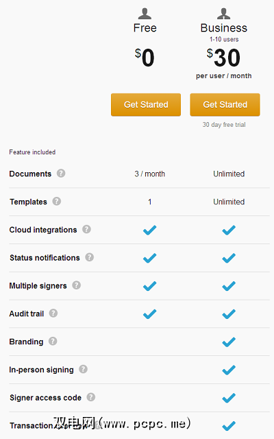 您还可以让其他人通过此服务为您签名文档,但是他们必须记账。免费版本每月允许3个文档,但商业版本每月30美元,可以无限文档且具有额外功能。