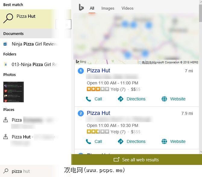 Windows 10也引入了通用搜索。。打开搜索框,当您输入内容时,您将同时看到本地结果和网络结果。如果您使用的是Cortana,这些功能甚至会包括Bing的详细片段,例如本地企业,计算器等。现在,您无需离开桌面就可以在Windows 10上获得所需的搜索结果。