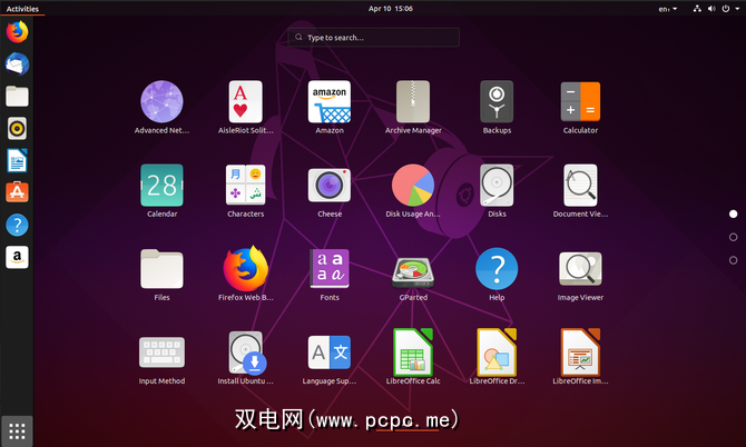 Ubuntu提供了自己的主题,并带有一个始终可见的应用程序扩展坞(如上图所示)。