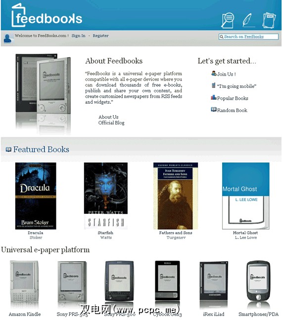 除了下载免费的电子书之外,还可以选择上传自己的内容,并让FeedBooks用户对其进行评估。此外,还有一个很棒的功能,可让您将喜欢的RSS Feed转换为PDF文件,可以在移动设备上查看该文件。