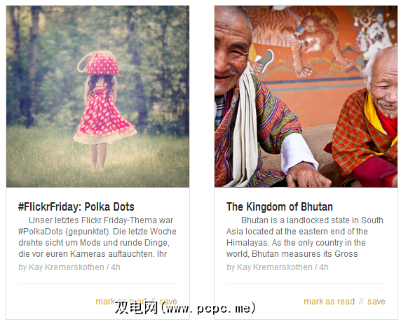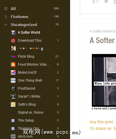 对我来说,这是图像密集型源代码(例如您在上方看到的Flickr博客。单击一个项目时,它会在覆盖中打开。其他简洁的布局功能包括隐藏类别而不进行更新的选项,事实类别在会话中保留其打开/关闭状态。最后但并非最不重要的一点是,Feedly可以根据您在Google+和Facebook上的受欢迎程度来整理和精选文章。