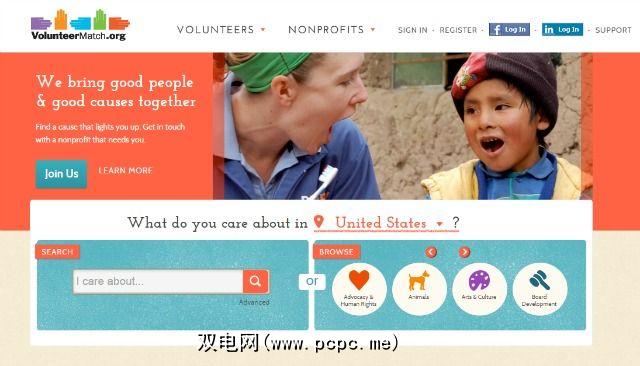 VolunteerMatch使得您可以轻松地在您感兴趣的特定类别(例如动物或艺术与文化)中寻找城镇的志愿者机会。