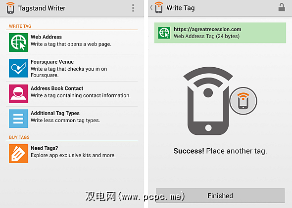 NFC编写应用:NFC编写应用允许用户将数据写入解锁的NFC标签。不幸的是,某些NFC技术不允许将新信息写入NFC标签,这会使它们在被写入一次后被“锁定"。我最喜欢的NFC编写器是Tagstand的程序。它具有美观且易于使用的界面。 NFC TagWriter是另一个很棒的程序,与Task Launcher类似,它提供了极其丰富的功能。