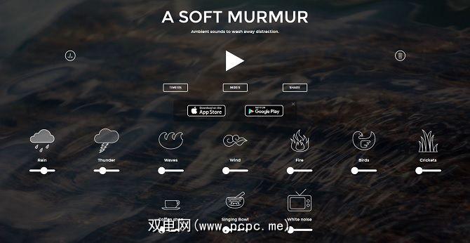“柔和的杂音"使用相同的想法:用舒缓的音景消除所有干扰。在雷声,海浪,咖啡店,鸟鸣声和声之间进行选择,以抚慰您。您可以通过组合两种或多种声音来将它们混合在一起。
