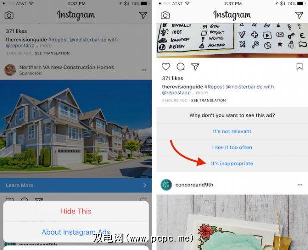 Instagram会问您为什么选择隐藏广告:它不相关,您经常看到它或不合适。如果您根本不想显示广告,请将其标记为不适当。随着您继续这样做,您最终将开发一个无广告的Instagram提要。