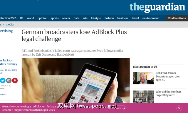 广告屏蔽功能扩散的最悲剧性后果是付费墙使用率的上升,阻止了读者访问高质量内容。当然,多年来,传统媒体机构的网站一直在使用付费专区来停止免费提供其文章,但广告屏蔽似乎加速了对其他付费专区的讨论,即使不是采用这种方式也是如此。