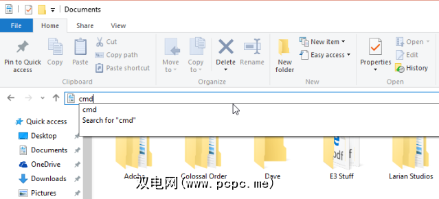 您可以像通常一样打开“运行"框并键入“ cmd",但这会产生一个不必要的额外步骤,因为您可以直接在“资源管理器"窗口中使用地址栏!