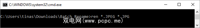 ren *.OLD *.NEW例如,要批量重命名文件从JPEG扩展为JPG,命令如下所示: