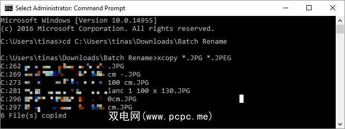 请注意,您可能需要为xcopy命令运行提升权限的命令提示符(具有管理员权限)。在Windows 10中,右键单击开始按钮,然后选择命令提示符(Admin)。您可以使用 cd 命令手动导航到您的文件夹,然后输入文件夹路径,例如 cd C:\ Users \您的用户名\ Downloads \ Batch重命名。