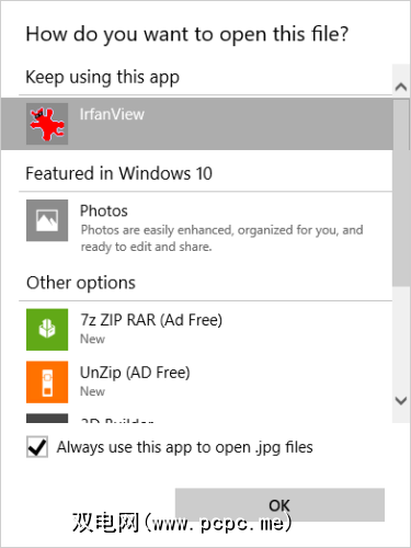 右键单击受影响的文件,从菜单中选择打开方式,然后-要永久更改关联的应用程序,请选择< strong>选择其他应用。现在选择正确的程序,并在始终使用此应用打开.ext文件旁边打勾,其中 EXT 是相应的文件扩展名。
