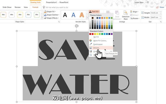 一旦出现,PowerPoint将为您提供两种用图片填充文本的方法。