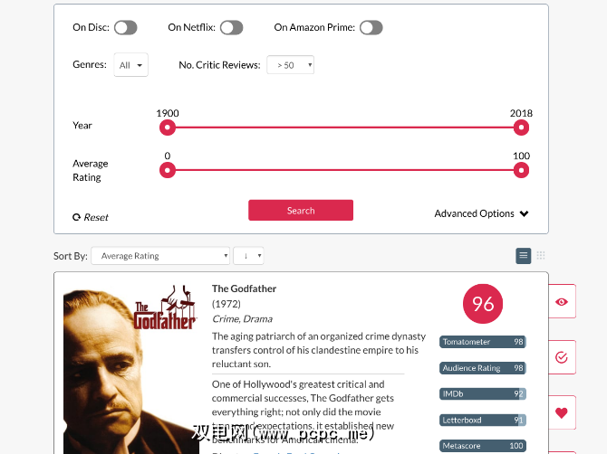 如果您使用Netflix或Amazon Prime(或两者),那么Flickmetrix是找到确切电影的最佳解决方案。它具有大量不同的过滤器,用于对推荐电影的列表进行排序。