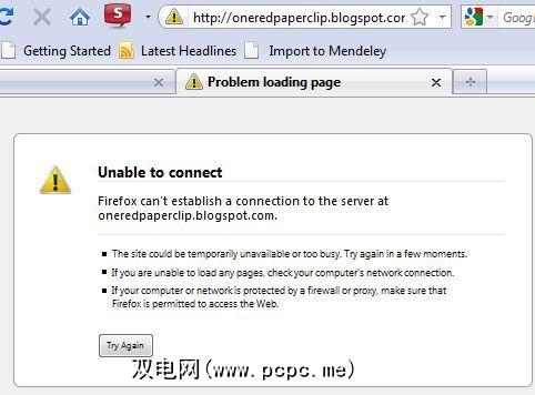 访问BlogSpot.com,您会发现可以正常访问主域。如果您尝试访问已禁止的任何子域网站,则会出现“ 无法连接"错误。