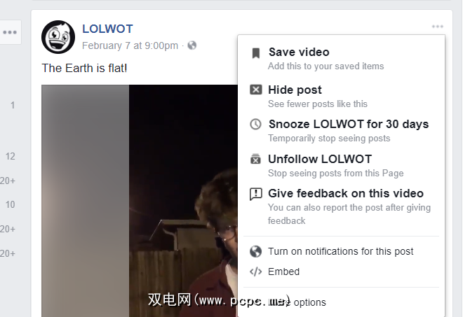 在Facebook上,似乎还有更多的东西。几乎每天都会从您的新闻提要中过滤掉不良意见的方法。每当您看到使您不高兴的帖子时,只需单击该帖子右侧的三个点即可查看您的选项。