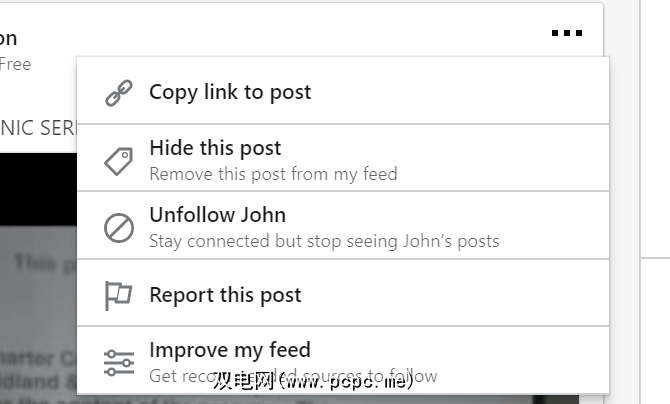 您会认为LinkedIn甚至不需要过滤器,但您会惊讶于人们在此处发布的各种内容。如果发现发现令人反感的内容,请右键单击帖子右侧的三个点。